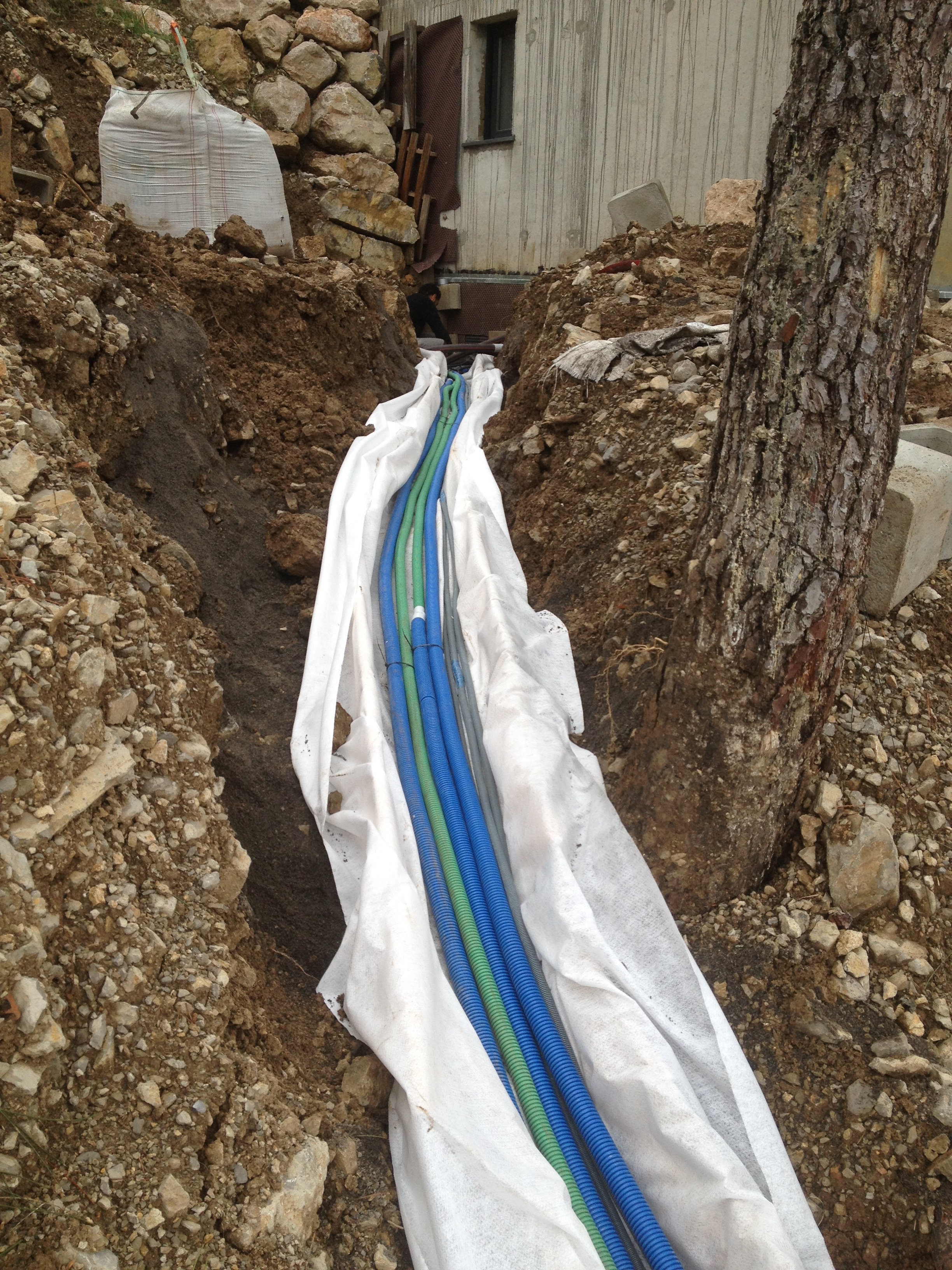 Tranché coffré afin de protéger les cuivres d’alimentation en gaz du groupe extérieur